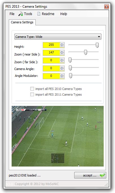 Ini adalah tool yang fungsi utamanya adalah untuk mengatur tipe sudut kamera PES 2013.