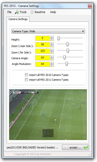 Ini adalah tool yang fungsi utamanya adalah untuk mengatur tipe sudut kamera PES 2013.