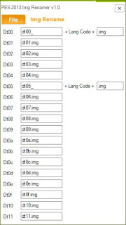 Sekedar tip saja, sebenarnya tool ini hanya untuk iseng-iseng saja, jika kamu merubah nama .img file melalui file ini, maka kamu juga harus merubah .img file yang ada di dictory PES sesuai dengan nama yang sudah kamu sematkan pada master PES (pes2013.exe)